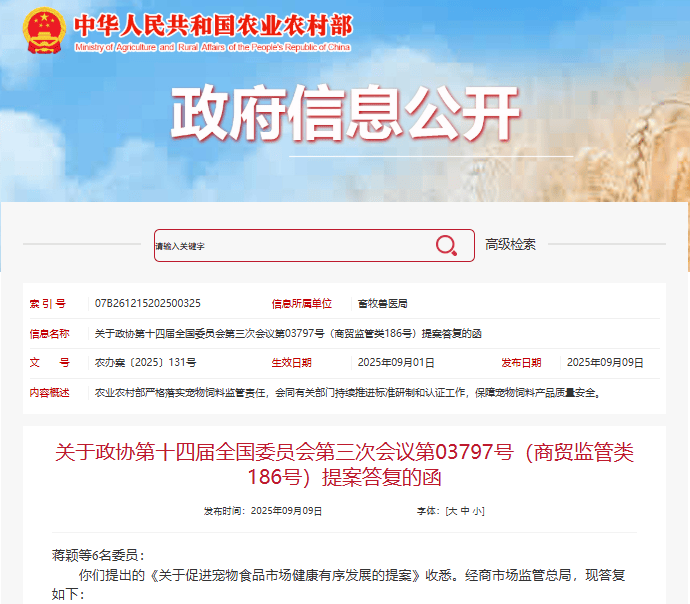 为回应行业关切,农业农村部在近期对全国政协提案的答复中明确,农业农村部已建立包括生产许可、进口登记、监督抽查、风险预警等在内的宠物饲料管理制度体系,并将持续强化事中事后监管。与此同时,市场监管总局与农业农村部正协同推进多项宠物食品国家标准的制定与更新,涵盖卫生标准、营养需求、标签规范等关键环节,旨在从源头上提升产品质量可控性。