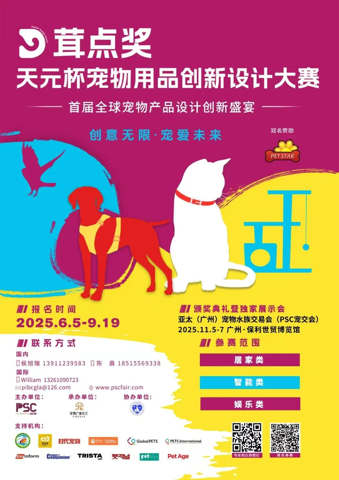 PSC宠交会联合中国礼仪休闲用品工业协会宠物产业分会,共同发起茸点奖——天元杯宠物用品创新设计大赛,旨在挖掘兼具环保理念、人宠情感联结与市场潜力的优秀设计,汇聚全球设计力量,为宠物行业赋能。