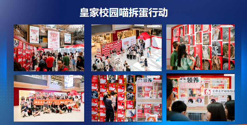 皇家“校园喵·拆蛋行动”,帮助校园动保组织做流浪猫的绝育工作,首批接触宠物食品的大学生往往把情感分留给品牌。校园救助者未来既可能是养宠主力,也可能成为KOC/KOL,提前绑定这一群体,等同于为十年后储备品牌传道者与高信任用户。