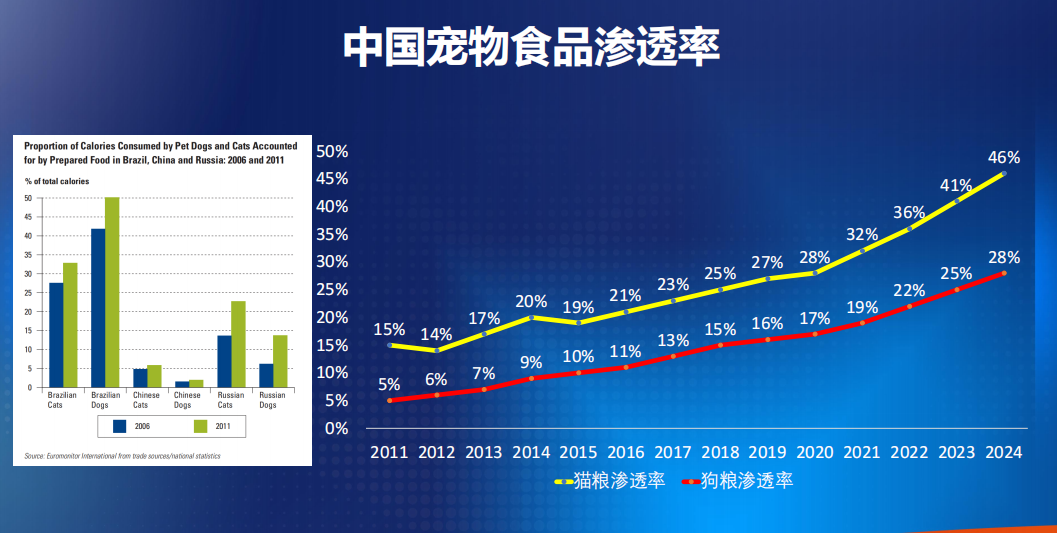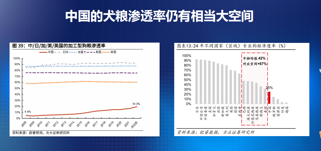 狗粮渗透率更低,仅为19.3%(约2021-2022年数据)。
