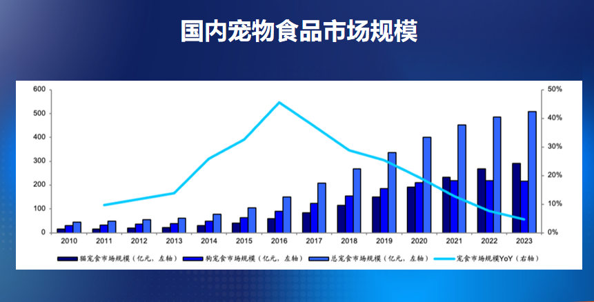 普瑞纳随后进入,国产品牌也逐渐崛起,但在近十年里,更多通过挑战外资品牌市场份额,作为主要增长方向,忽视了对市场的教育与拓展。此举本质是在存量市场里“切蛋糕”,而非把市场整体做大。若行业已高度成熟,切蛋糕尚有意义;但中国宠物食品仍有大片空白,空白究竟多大,下文将用数据详述。