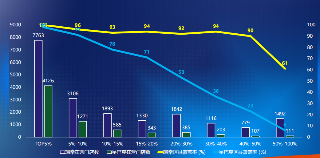 星巴克如今不敌瑞幸,正是因为星巴克的市场渗透和下沉远不如瑞幸。瑞幸进入大学食堂、中国电信营业厅、陕西省人民医院门诊大厅和住院部设点。