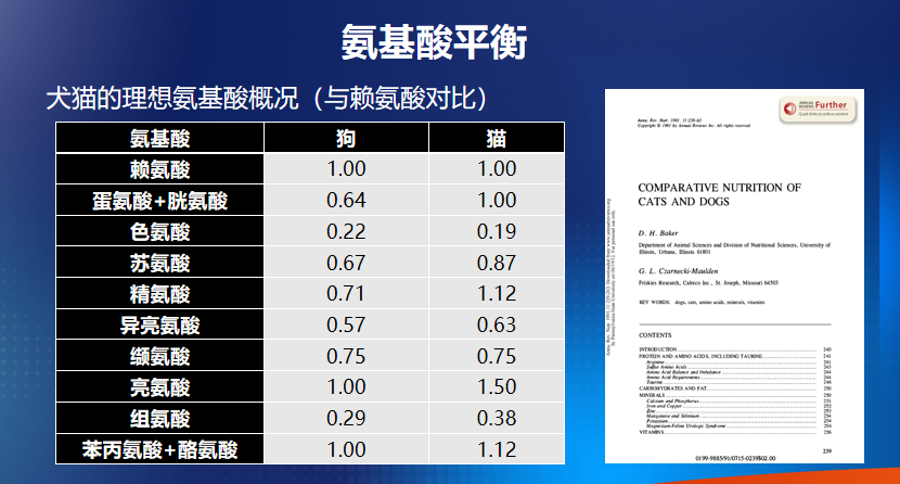 一份发表于1991年的氨基酸平衡表,它展示的是蛋白质中各种氨基酸与赖氨酸的比值,达到此比例可带来更好的喂养效果,但至今仍被国内多数品牌忽略。