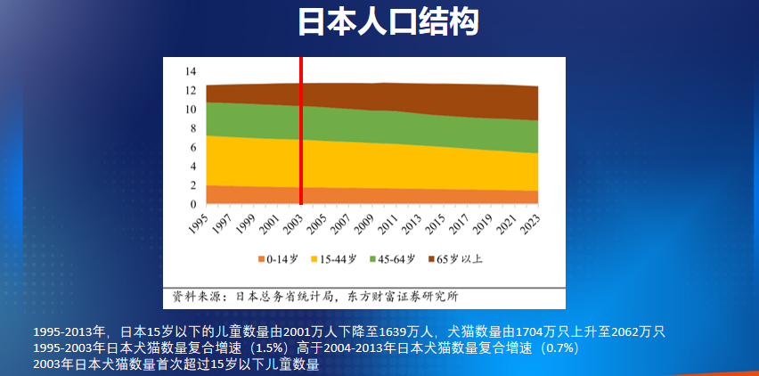 以人口结构对照,日本2003年犬猫总量已经超越15岁以下儿童,而中国直至2024年才超过4岁婴幼儿,增量窗口期至少还有十年。