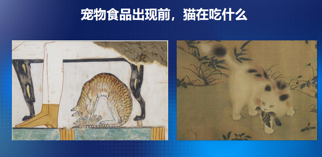 从宋代的一些画作中可以看到,猫一方面主要以捕食野外小动物为生,但同时也有记载表明,宋朝人开始使用小鱼、肉类拌合谷物等来制作猫食。