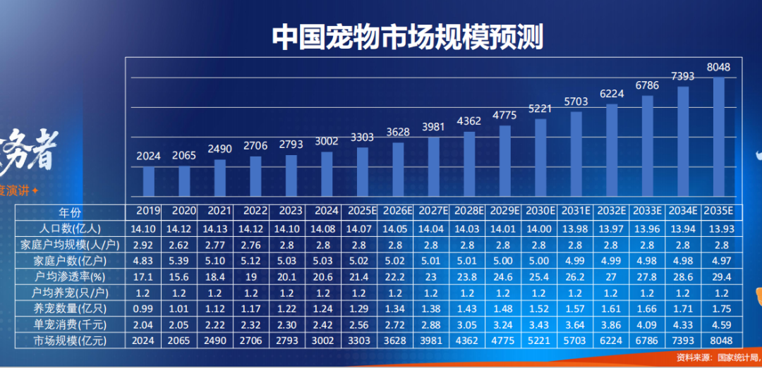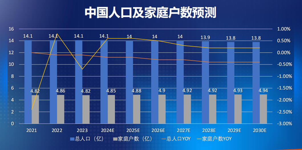 尽管中国人口可能下降,但家庭户数仍在增长,尤其是一人户比例上升,为宠物行业带来持续增长的潜力。