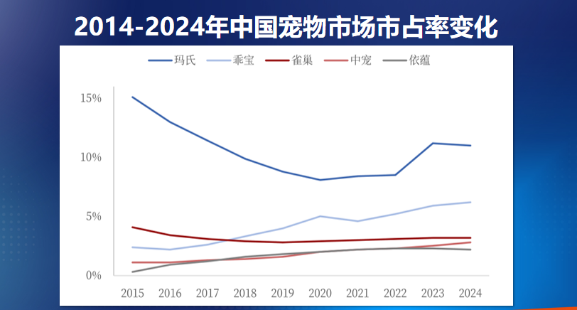 2014–2024年市占率曲线显示,玛氏份额因国内品牌抢占而持续下滑,却在收购渴望与爱肯拿后迅速反弹,这也印证“资本收购品牌”的捷径逻辑。