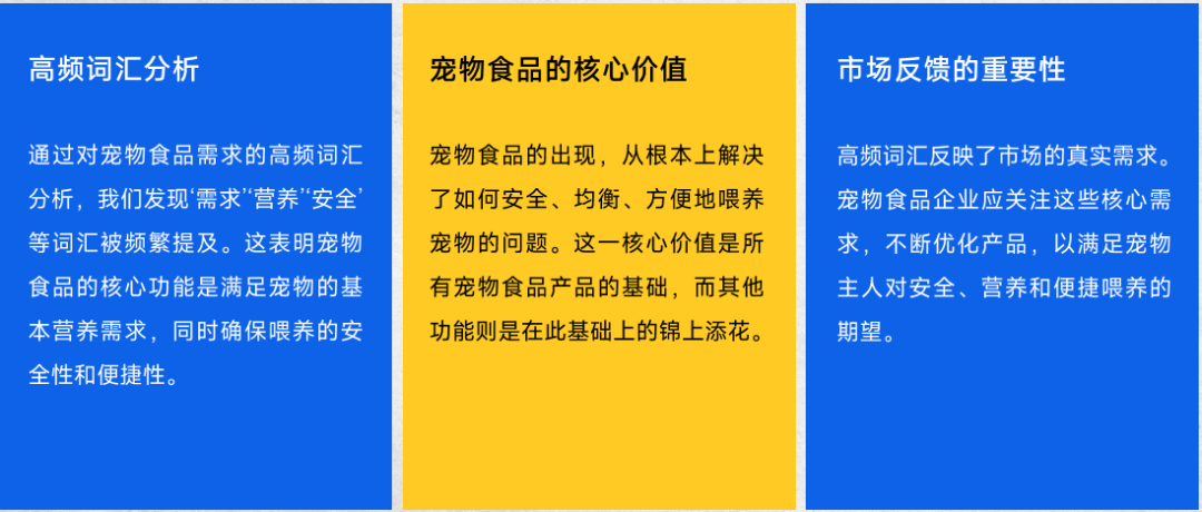 宠物食品的出现,归根结底解决的是让宠主能够安全、均衡、方便地进行喂食这一问题。这也是宠物食品必须解决的核心问题。在此之上的所有附加功能,都属于锦上添花。