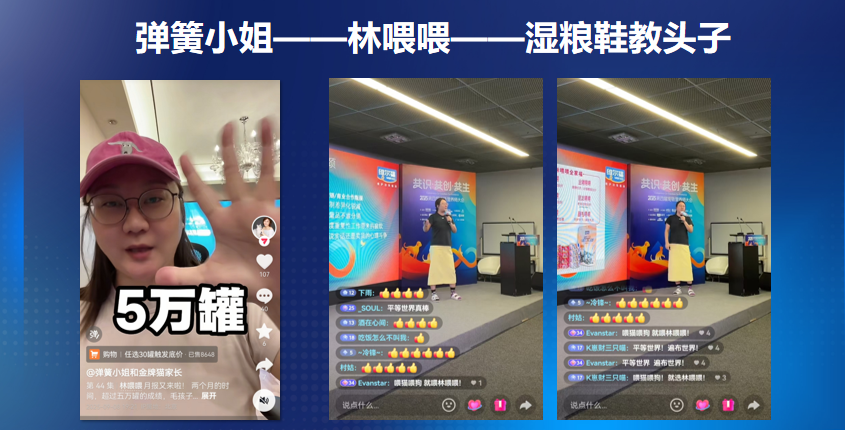 弹簧小姐由博主转型品牌后,自封“湿粮邪教主”,无条件推荐湿粮。品牌上市两月销量5万罐;在宠物营养师大会直播时,粉丝自发在弹幕刷屏“喂猫喂狗就选林喂喂”,形成高纯度UGC。用户用复制粘贴的行动为品牌主张背书,证明主张一旦鲜明,就能成为低成本、高粘性的增长引擎。
