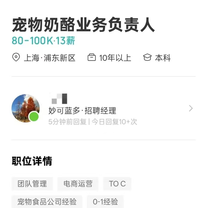宠物食品赛道近年来已成为乳制品企业争相布局的热门领域。就在不久前,国内奶酪第一股妙可蓝多被曝正在紧急搭建宠物奶酪业务线。据悉,该公司开出了月薪高达10万元的优厚条件,急聘宠物奶酪业务负责人,凸显出其对该业务的重视程度。