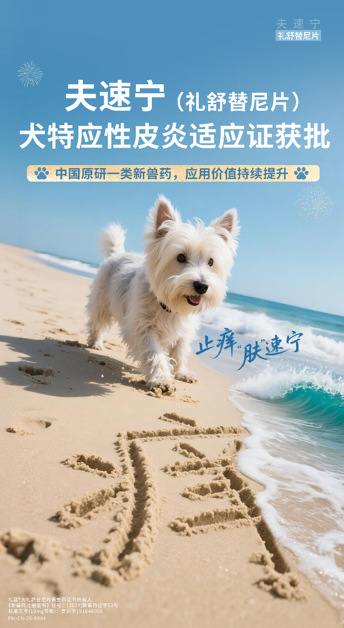 夫速宁犬特应性皮炎适应证的上市,丰富了中国兽医在皮肤病领域的武器库,其“靶向止痒+抗炎修复”的协同作用,推动了犬过敏性皮肤病诊疗理念的升级,有望成为中国宠物皮肤病治疗领域的一个新里程碑。