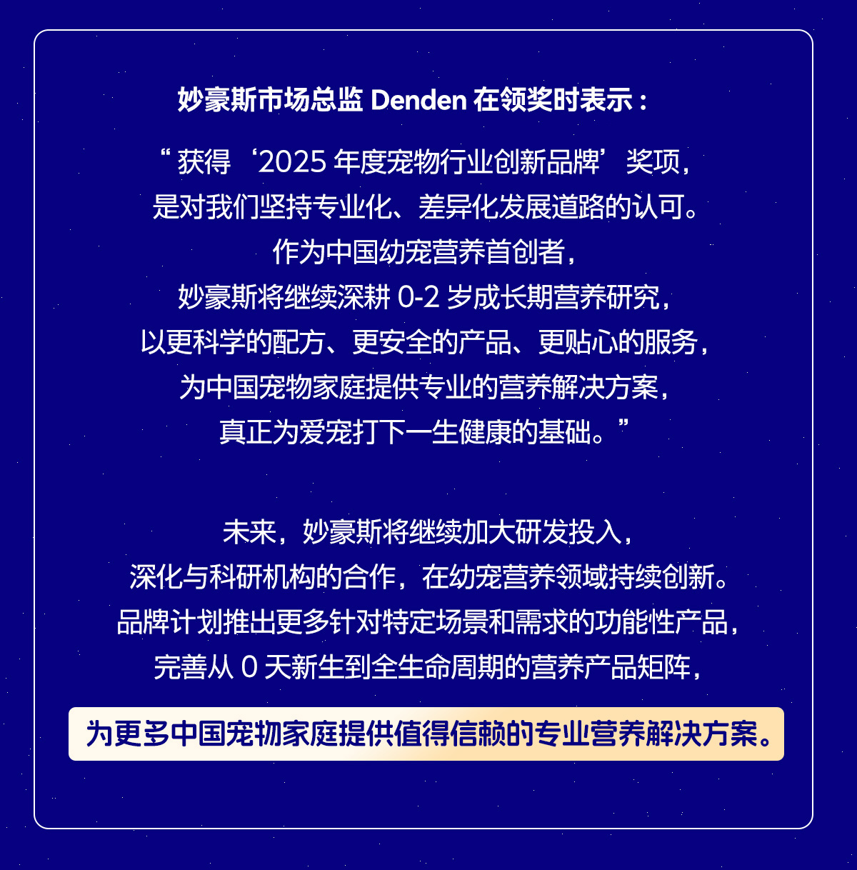 开创幼宠营养新赛道,妙豪斯荣膺2025年度宠物行业创新品牌
