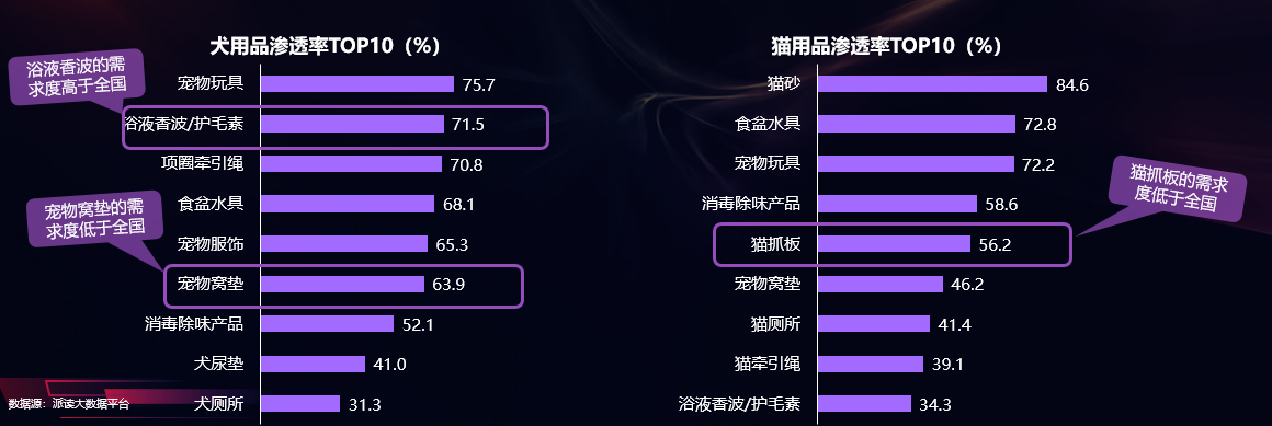 犬主人首选玩具,猫主人首选猫砂