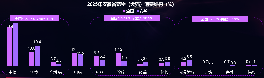 安徽宠物消费格局:食品>医疗>用品>服务