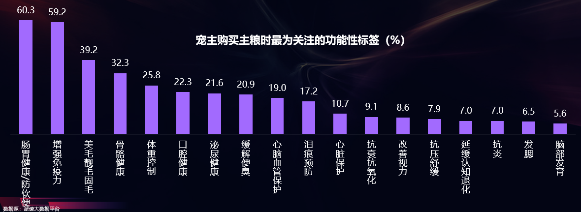 肠胃健康与增强免疫是宠主最看重的功能标签