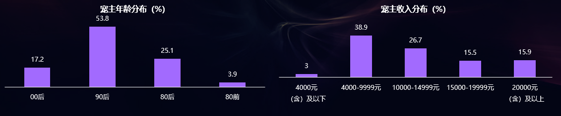 90后为养宠主力军,宠主收入集中在4000–14999元区间