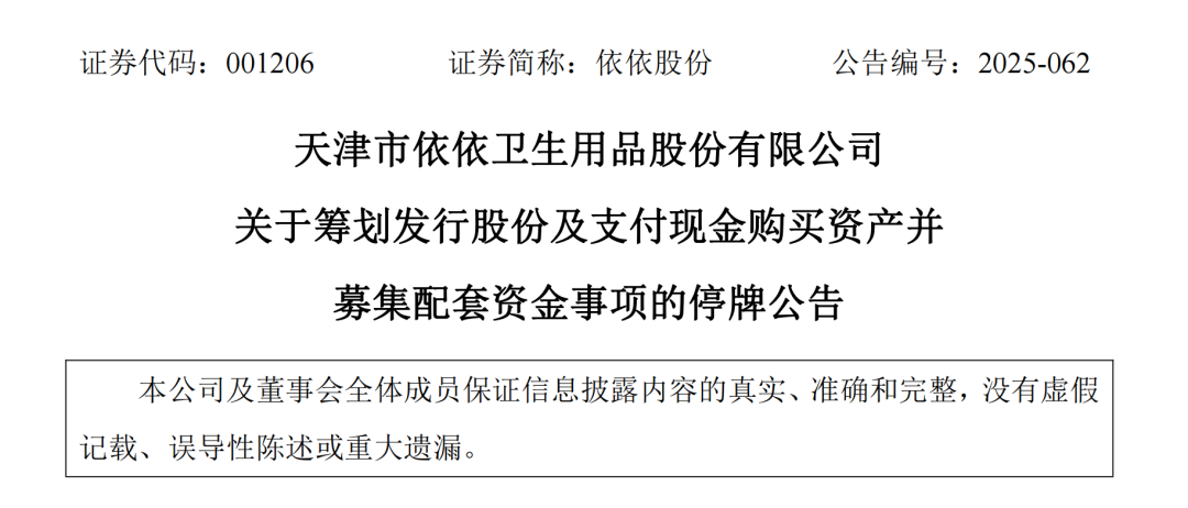 白皮书团队讯,近日,被誉为“宠物纸尿裤第一股”的依依股份(001206)突发停牌公告。公告称,公司正在筹划发行股份及支付现金购买资产并募集配套资金事项,交易标的为杭州高爷家有好多猫宠物食品有限责任公司(以下简称“高爷家”)。公司股票自10月14日开市起停牌,预计在不超过10个交易日内披露交易方案。