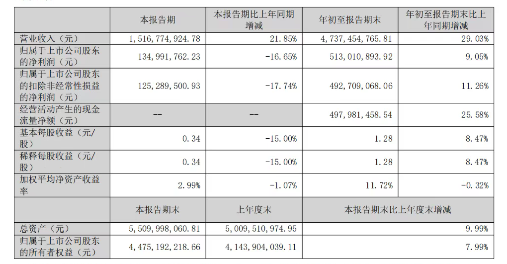 尽管利润短期承压,公司经营性现金流表现良好,前三季度经营活动产生的现金流量净额为4.98亿元,同比增长25.58%,显示出主营业务较强的回款能力和运营质量。