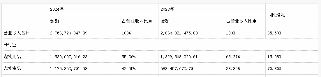 作为国内宠物用品行业的领军企业,天元宠物此次跨界收购计划并非偶然。天元宠物专注于宠物窝垫、猫爬架、宠物玩具、宠物服饰等多品类产品的研发、生产与销售,凭借优质的产品品质和完善的渠道布局,在国内外市场树立了良好口碑。目前,其产品已成功进入美国、欧盟、澳大利亚、日本等多个国际市场,合作客户涵盖美国沃尔玛、Kmart AUS、Amazon、Chewy、Fressnapf等全球大型连锁商超、知名电商平台及宠物用品连锁企业。值得注意的是,天元宠物的宠物食品业务近年来增长迅猛,2023年、2024年及2025年1-6 月的收入分别为 6.88亿元、11.76亿元和6.68亿元,占比逐年提升至33.80%、42.55%和46.55%,成为天元宠物的核心增长引擎之一。