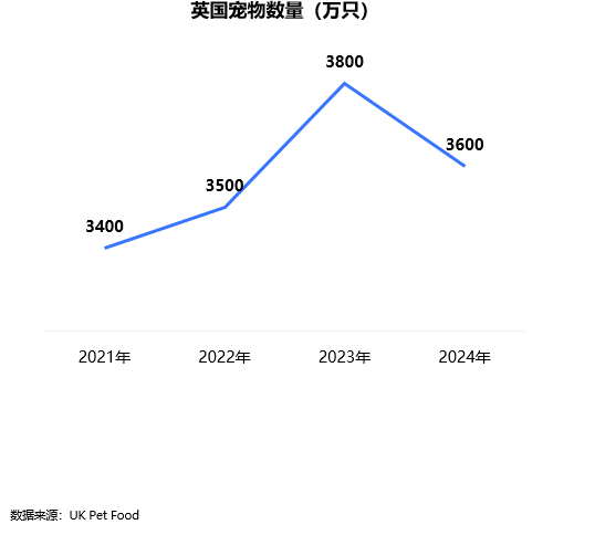 2024年,英国宠物数量约为3600万只,相较于2023年减少200万只。