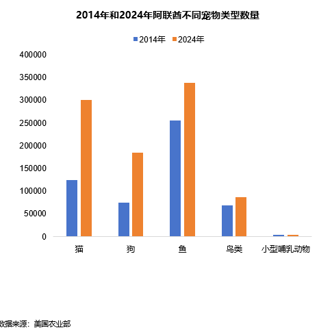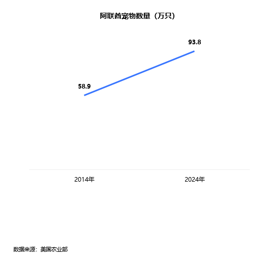 阿联酋的宠物数量从2014年的58.9万只增长到2024年的93.80万只。
