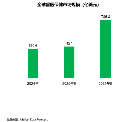2024年,全球兽医保健市场规模为395.6亿美元,预计到2033年将达到786.8亿美元,预测期内复合年增长率为7.94%。