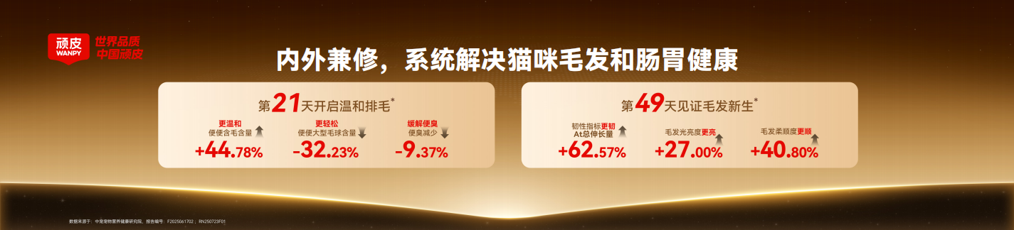 这些数据的背后,是顽皮28年研发实力的集中释放,更帮助顽皮金盾®美毛烘焙粮重新定义了市场现有的「美毛功能」烘焙粮产品:不止美毛,更能固毛、排毛、减少吐毛球。