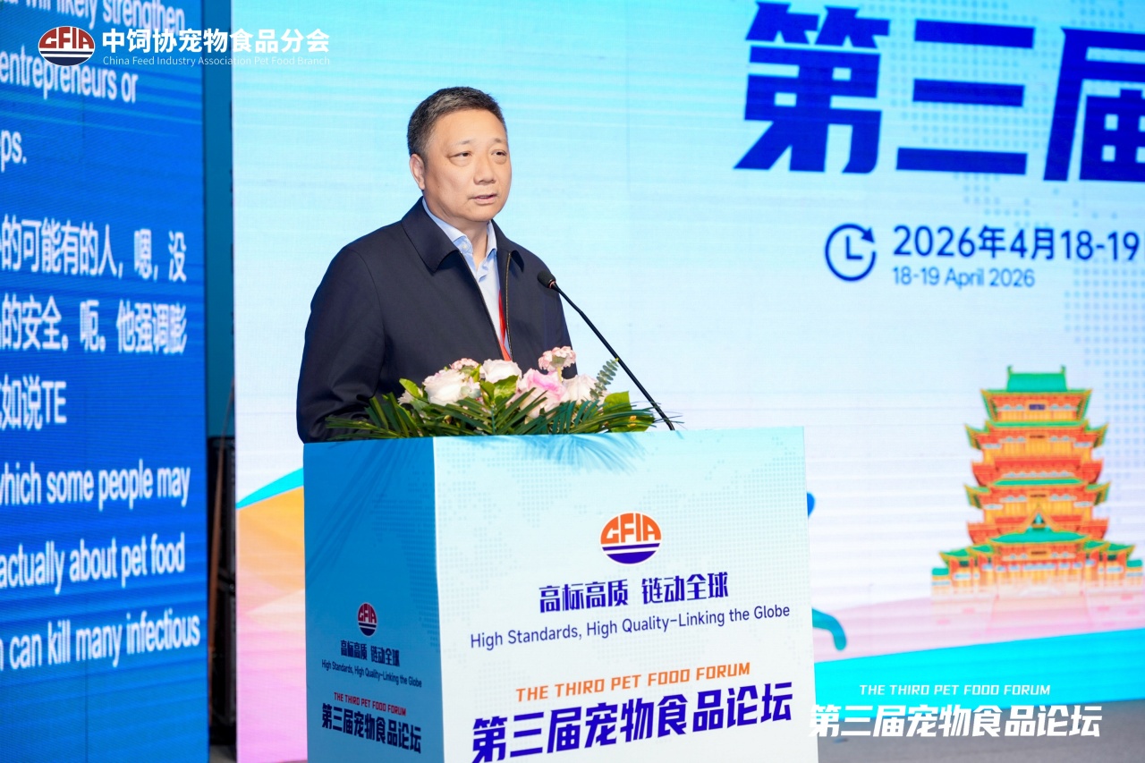 中国饲料工业协会会长王宗礼进行大会致辞。他指出宠物产业是现代畜牧业的重要延伸,是饲料工业高质量发展的新兴增长极,更是满足人民美好生活向往、促进消费升级的民生产业。为此,王宗礼会长希望宠物食品行业坚守安全底线,筑牢宠物食品的品质根基;坚持创新驱动,提升核心竞争力,推动宠物食品向更科学、更健康、更细分、更绿色的方向升级发展;强化规范自律,推动宠物食品行业有序发展;深化协同合作,共促宠物食品产业的繁荣。