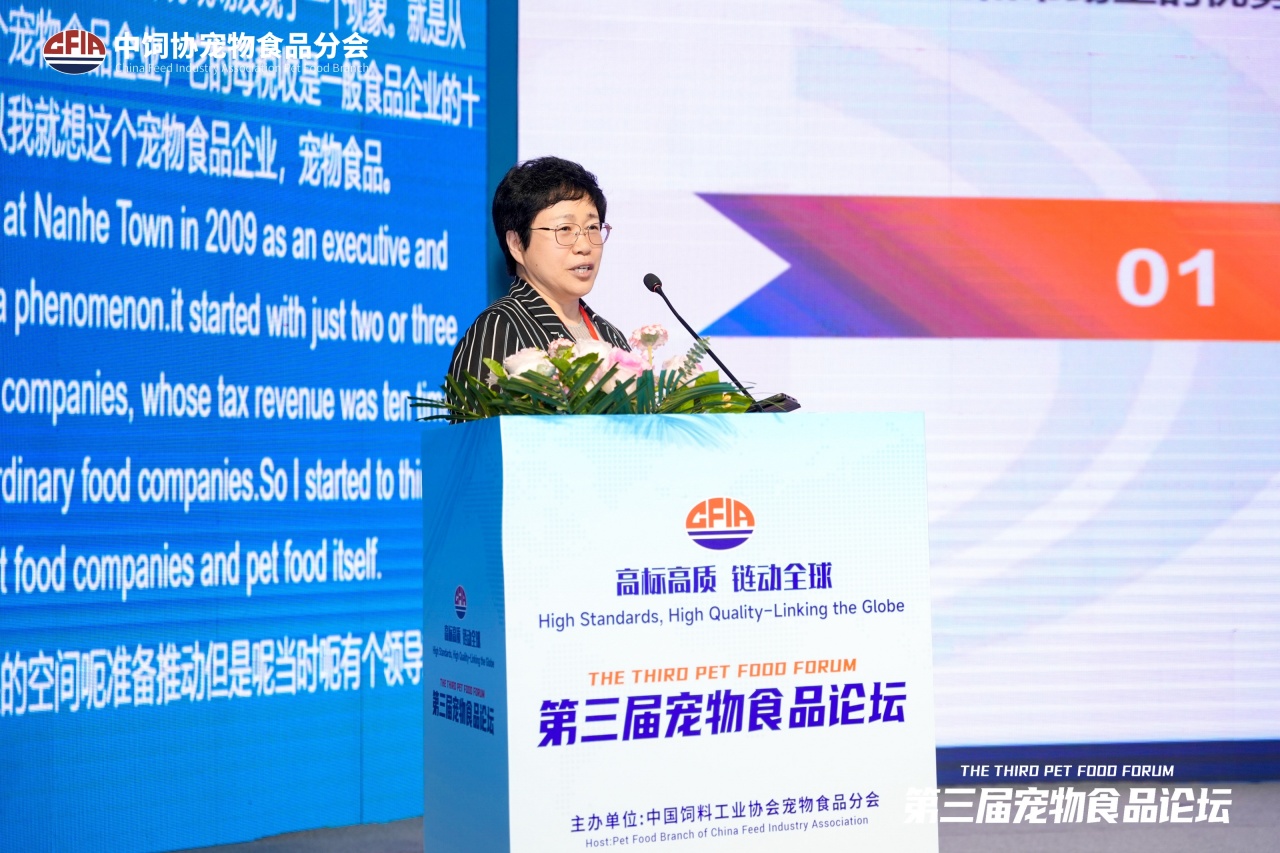 围绕宠物食品产业高质量发展与区域集群建设,河北省宠物产业发展顾问、邢台市人大原副主任、南和县原县委书记李胜敏带来《国策春风送暖,产业八仙过海:中国宠物食品迈向高质量竞争新阶段》主题演讲。她指出在国家政策密集加持下,中国宠物食品行业正告别无序发展,迈入规范化、集群化、高质量竞争的全新阶段。而南和宠物产业正从小散弱起步,靠政府引领、园区集聚、科技赋能与严格监管,成长为全国领先的宠物食品产业集群典范。她表示未来行业将以标准升级、国产替代、科技赋能、品牌出海为主线,全力迈向万亿级高质量发展新赛道。