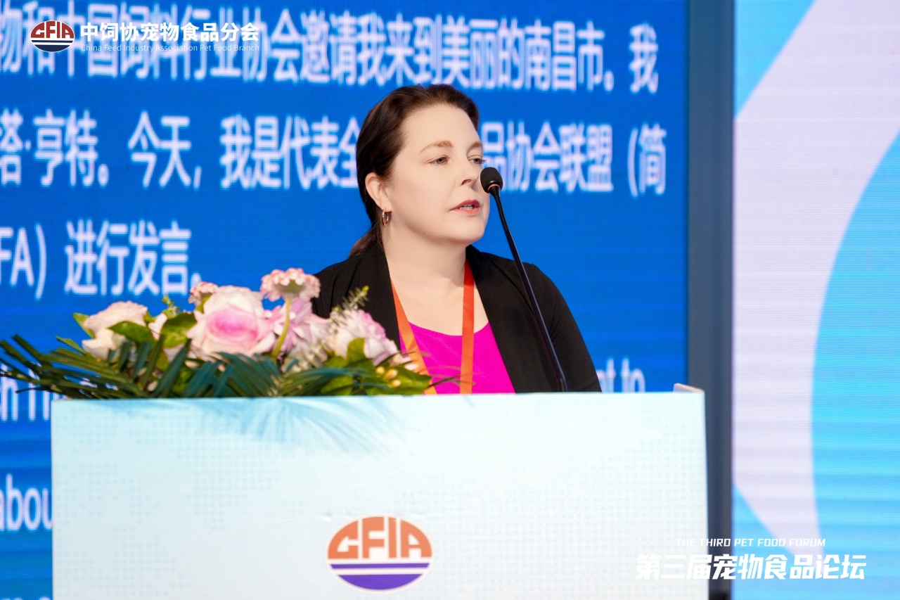 GAPFA全球宠物食品协会联盟主席Loretta Hunter带来《以科学、安全与合作推动全球宠物营养发展》主题演讲。她指出全球宠物行业高速增长,科学营养与食品安全是行业发展根基,全球宠物食品协会联盟正携手各国推动统一标准与安全贸易。她呼吁中外行业加强协作,以科学准则与开放合作共促全球宠物食品产业健康可持续发展。
