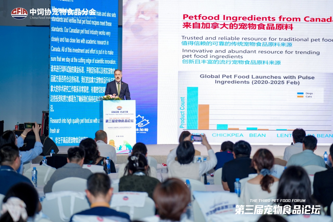 加拿大驻华大使馆食品安全和动物健康参赞罗飞犇(Benjamin Roffey)带来《加拿大宠物食品--优质宠物食品和高质量原料》主题演讲。他介绍了加拿大宠物食品产业规模、严格监管体系以及高品质肉类、豆类、水产品等优势原料,他期待加强中加宠物食品贸易与技术合作,推动安全优质产品双向流通。